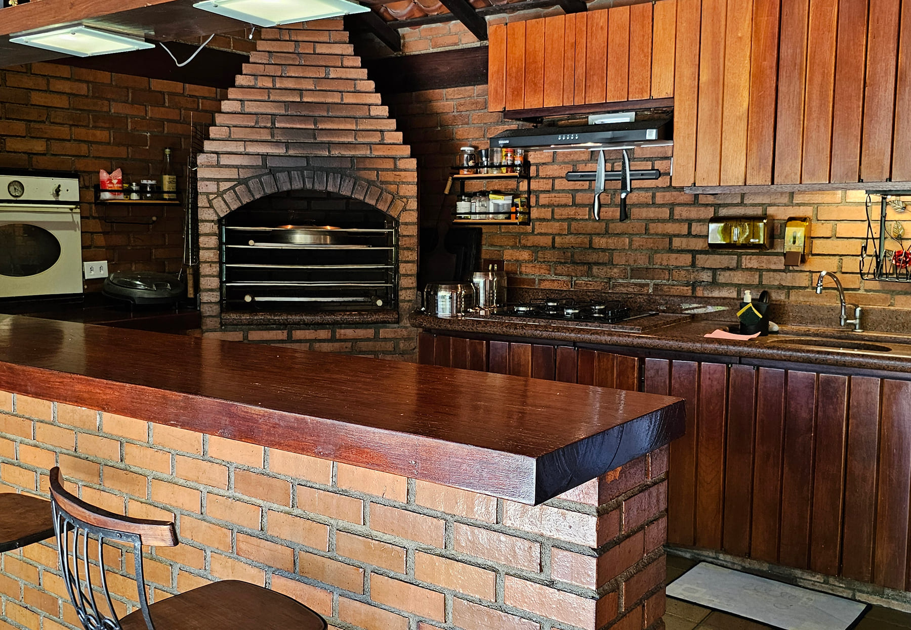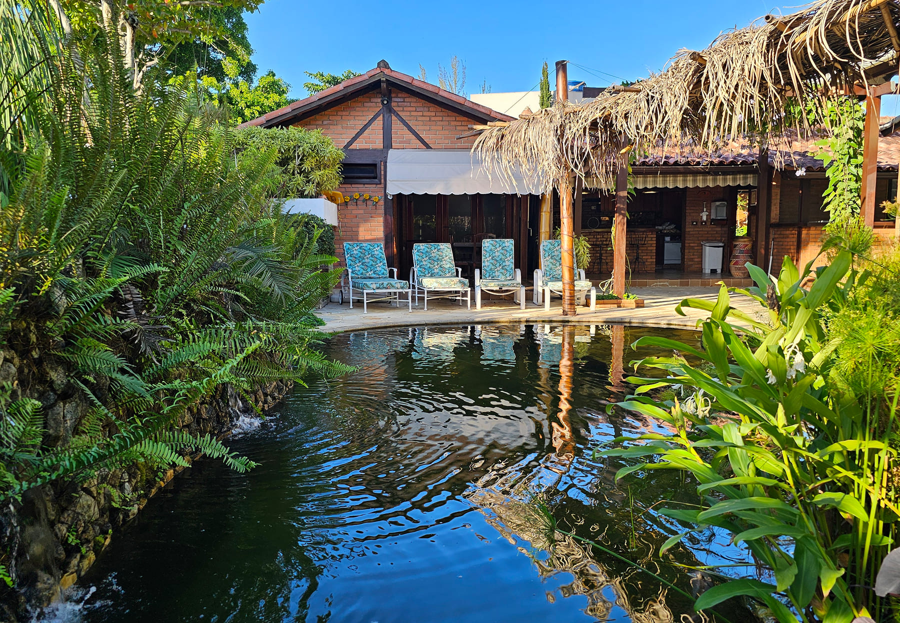 com Churrasqueira, Maquina de lavar Louças, Freezer Geladeira, Piscina Natural, Lago com Carpas.